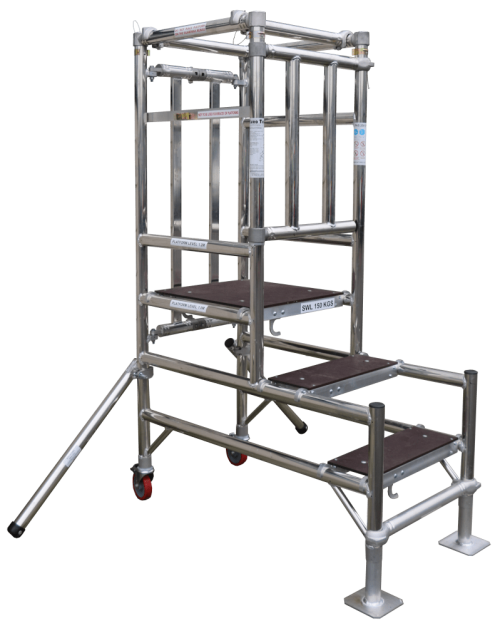 Lightweight podium steps for quick, safe access to moderate heights. Stable platform design with handrails for secure working. Ideal for warehouse work, retail maintenance, and light construction tasks where mobility and convenience are essential.